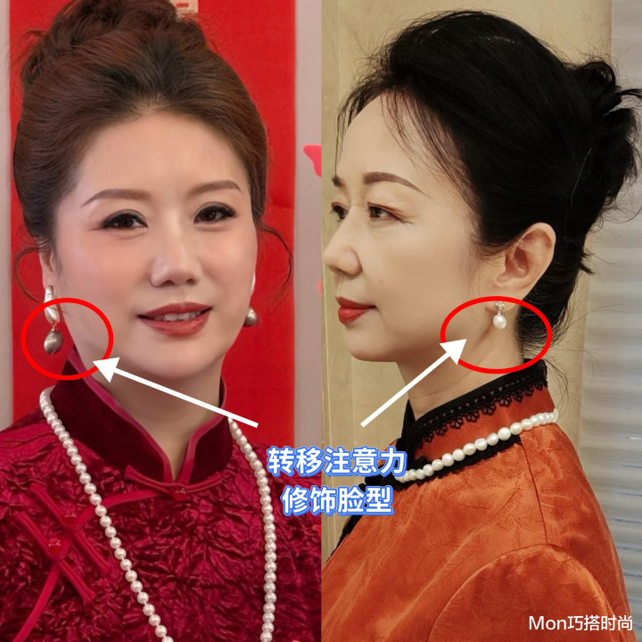 不过,比起纠结发夹怎么挑选,更建议大家可以试试佩戴耳环,从正面看能修饰我们的脸型,特别是结合盘发之后,能把视觉焦点转移一部分到两侧,不会觉得脸部留白太多,要是你有点发腮,那就佩戴一款小而精的珍珠耳坠,显脸小的同时还增加了精致度。