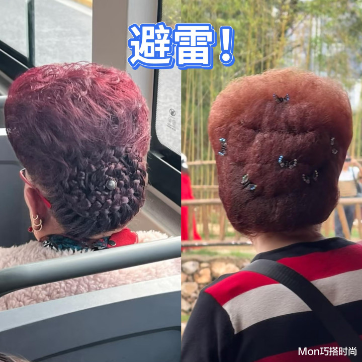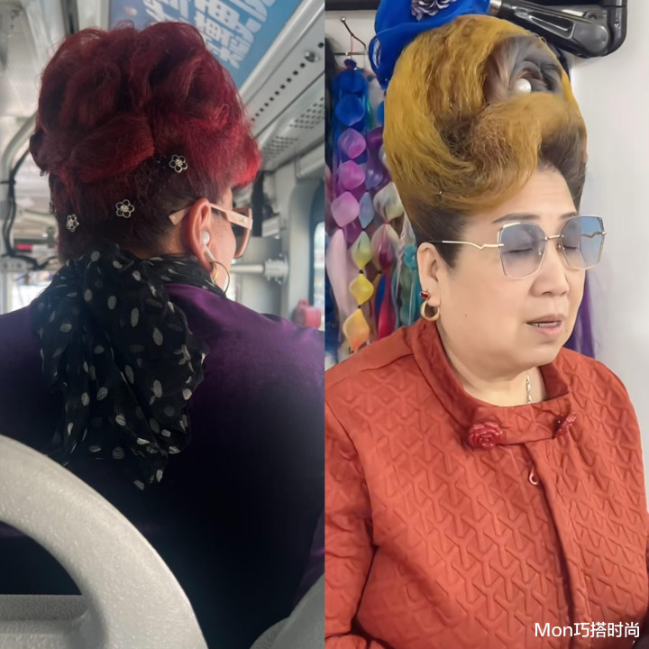 你看这些阿姨、奶奶们,她们的发量其实真的不多,但她们聪明地选择了盘发造型,把所有的头发集中在一起,利用头发的层次感和蓬松度来掩盖发量稀疏的问题,不但让发量视觉上变多了,也能显得头型更加饱满。