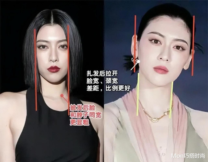 但换成盘发就好多了,能把我们的脖颈露出来,并且增加颈部的视觉长度,显得头肩比例更好,显瘦的同时也更利落清爽。